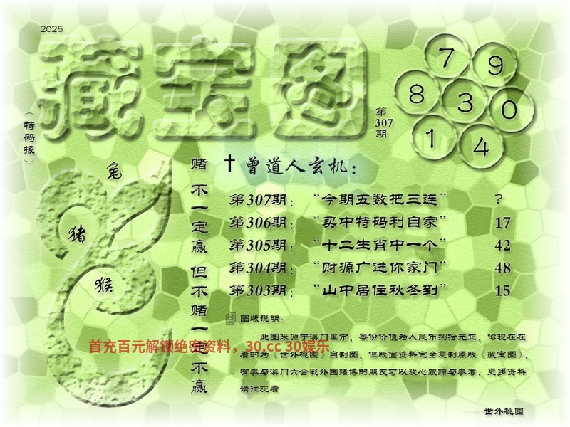 311期:白姐特段/简单发财诗/马会欲钱料/七娘一句中/开藏特图料